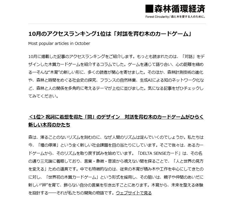 この度、ウェブメディア「森林循環経済 FOREST CIRCULARITY」にて、