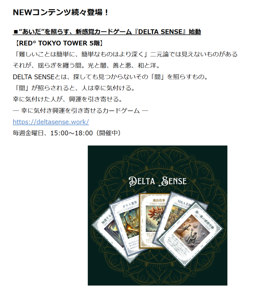 RED° TOKYO TOWERでは7月からDELTA SENSEが始まりまして、
